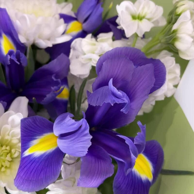 Очаровательный букет с ирисами, ромашками и ароматной маттиолой.Букет подойдет для поздравления с днем рождения как юную девушку, дочку или сестру, так и в качестве комплимента или пожелания хорошего дня.К каждому букету мы прикладываем:- открытку с Вашими пожеланиями- инструкцию по уходу за букетом- пакетик кризала для продления жизни цветам